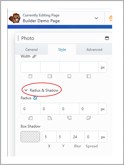 - Box Shadow: Adds depth to your content. Control color, X (horizontal) and Y (vertical) offset, blur, and spread using sliders.