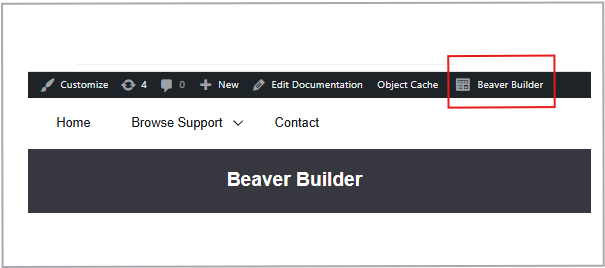 • Click the Beaver Builder option in the bar to launch the editor for that page.