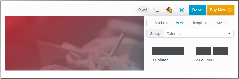 Rows Tab – Choose from prebuilt row layouts to structure your design.